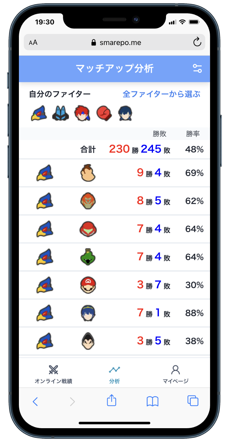 スマレポは、大乱闘スマッシュブラザーズ(スマブラ)のオンライン対戦の戦績を記録・分析できるWebアプリです。5年前の今日(2021/01/10)にリリースしました。詳しくは スマブラが上手くなりたすぎてアプリを作りました という記事に書いています。